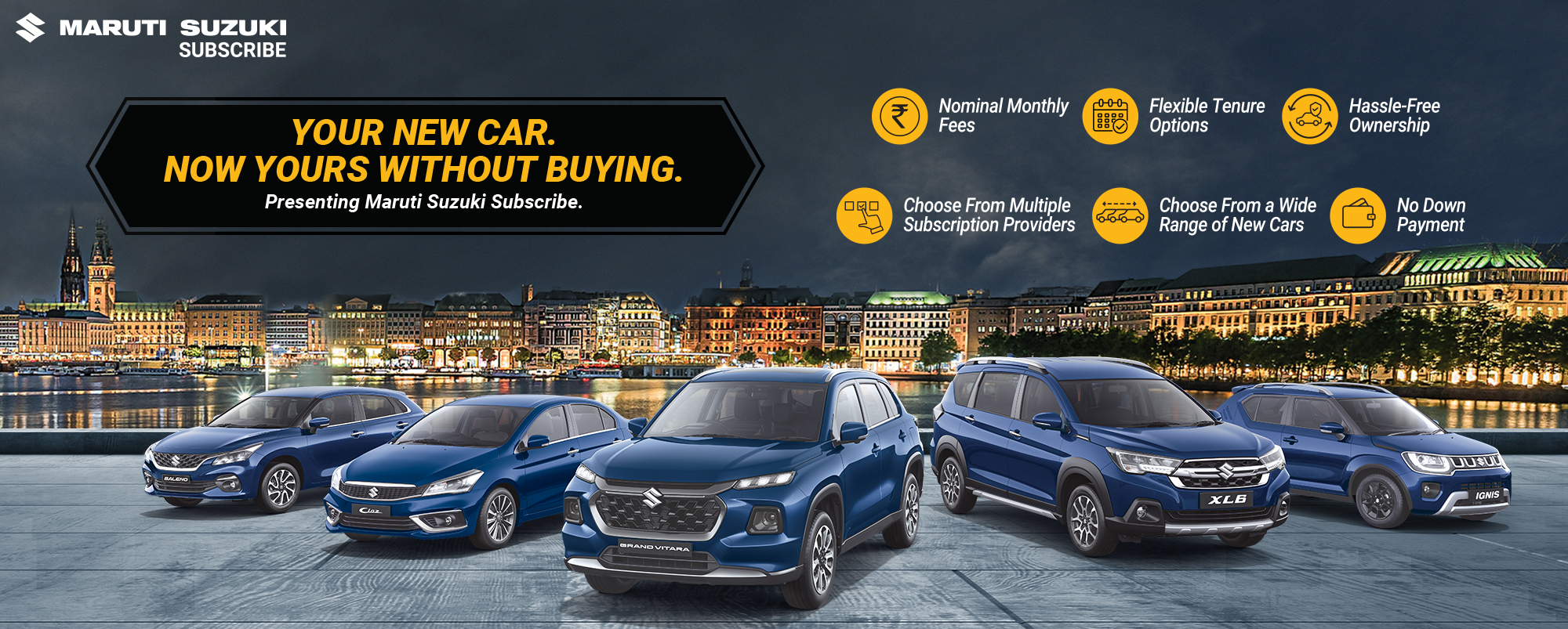 Maruti Suzuki Subscribe enables all customers to enjoy driving their preferred Maruti Suzuki cars without having to deal with all the financial responsibilities that come with owning a car.All you need to do is opt for a monthly subscription plan at a fixed monthly fee, which includes the routine maintenance and insurance costs, and choose a flexible tenure. At DD Motors in, Haridwar Bypass, Dehradun, all Hatchback, Sedan, SUV, the MUV models line-up includes Baleno, Invicto, EVitara, Jimny, Ciaz, Ignis, Fronx, Grand Vitara, XL6. Here, you will enjoy Maruti Suzuki Subscribe benefits such as: